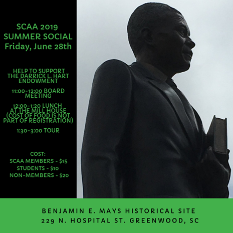Join us for our annual summer social, Friday, June 28th! This event supports the Darrick L. Hart Endowment! We will be gathering for some great food, conversation, and a little added bonus of touring the Benjamin E. Mays Historical Site which was just recently honored with the Literary Landmark Distinction by the American Library Association, the South Carolina Academy of Authors and the South Carolina State Library.