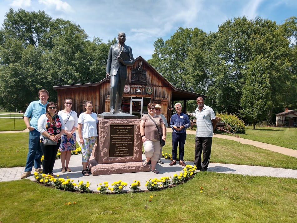 Those in attendance enjoyed some amazing pizza options at The Mill House, before heading over to the site for a tour of Dr. Mays’ birth home, a one room school house, the gardens, and the museum. The tour was provided by Director Chris Thomas. The group learned about the life and legacy of a South Carolina native who was an amazing educator, civil rights pioneer, theologian, author and as quoted on the statue “last of the great schoolmasters.”